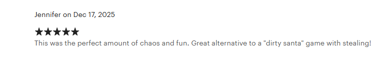 And it's a great alternative to traditional white elephant gift exchanges. Here's what one customer had to say,